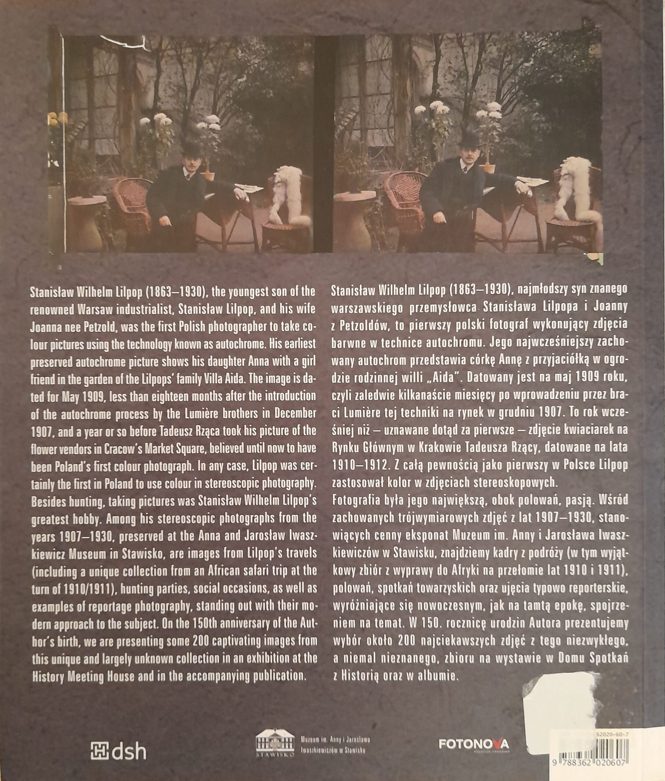 Album niezwykłych zdjęć Stanisława Wilhelma Lilpopa (1863-1930), potomka znanej warszawskiej rodziny przemysłowców, założyciela miasta-ogrodu Podkowa Leśna i ojca Anny Iwaszkiewiczowej. Był on prawdopodobnie pierwszym polskim fotografem wykonującym kolorowe zdjęcia w technice autochromu. Z całą pewnością jako pierwszy w Polsce (w 1909 roku) wprowadził kolor do fotografii stereoskopowej. W publikacji znalazło się ponad 200 fotografii z lat 1908-1930, z czego ponad 80 w technice 3D. Znakomite pod względem artystycznym zdjęcia są również cennym zapisem życia towarzyskiego Warszawy, polowań oraz podróży (w tym słynnej wyprawy Lilpopa do Afryki). Zdjęcia Lilpopa świadczą o niewątpliwym talencie i umiejętności fotograficznego postrzegania rzeczywistości. Stanowią ciekawy zbiór – wszechstronny i znakomity pod względem artystycznym, a jednocześnie są cennym dokumentem dającym wyobrażenie o codziennym życiu i wydarzeniach historycznych pierwszych dziesięcioleci XX wieku.